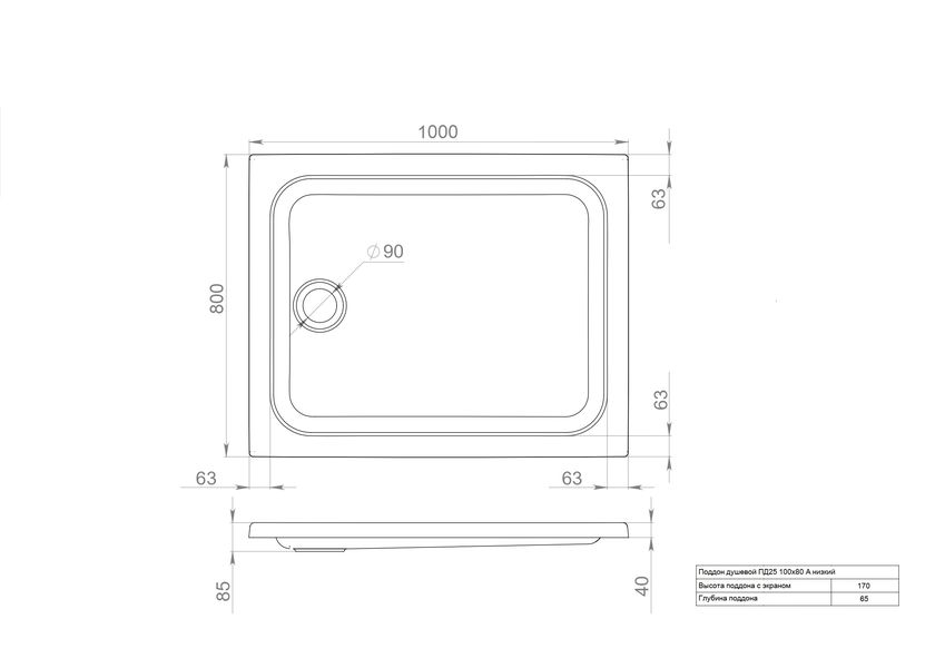 Поддон душевой Тритон ПД25 прямоугольный, низкий, 100*80 в комплекте
