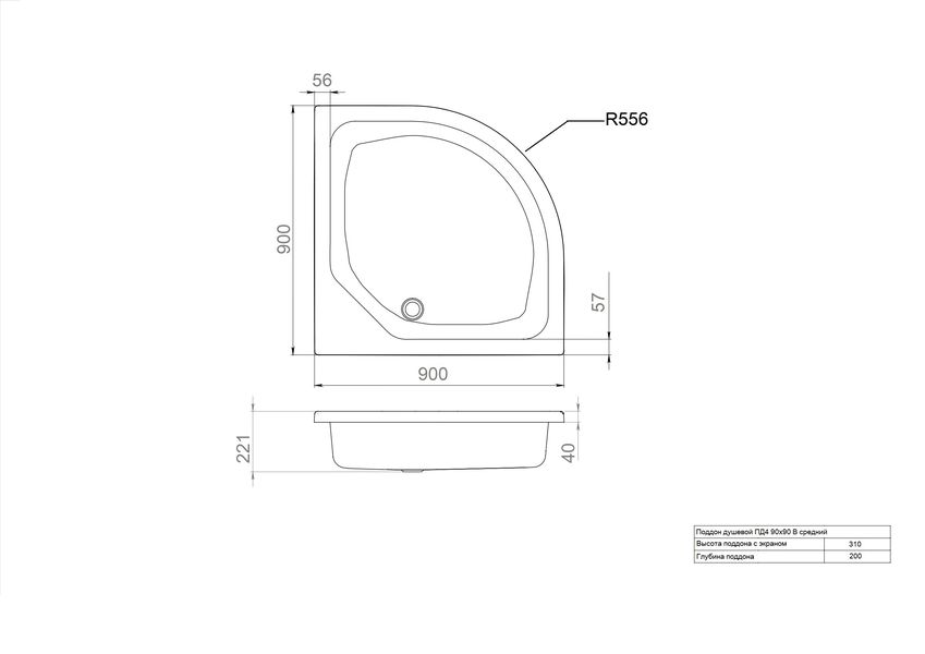 Габаритные размеры ДхШхВ: 900*900*310 мм