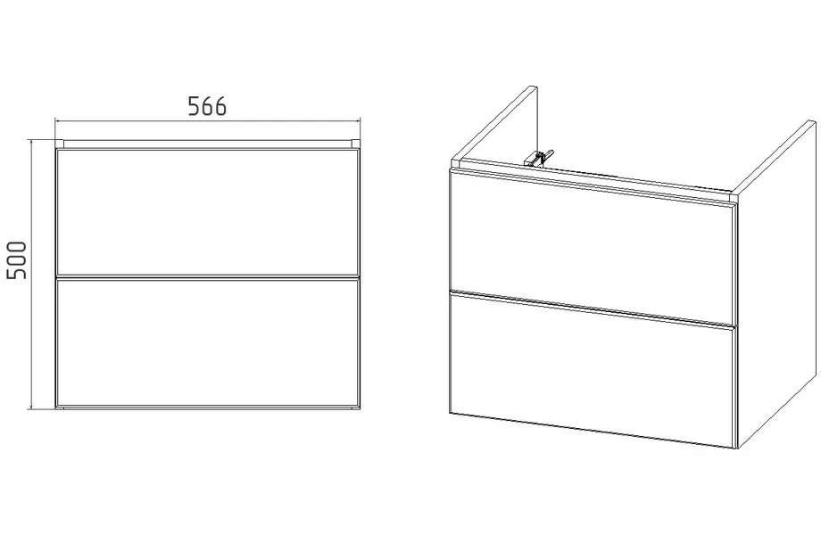 Подвесная тумба-умывальник Виант София 60 с двумя выдвижнымм ящиками укомплектована керамической раковиной Cersanit Como 60