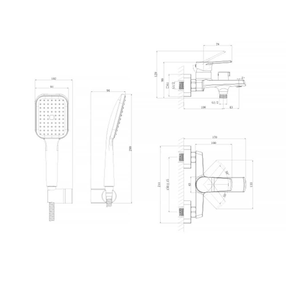 Комплектация: смеситель для ванной, душевой набор (душевая лейка, держатель лейки, душевой шланг); S-образные эксцентрики 1/2, декоративные отражатели, гарантийный талон, инструкция по эксплуатации