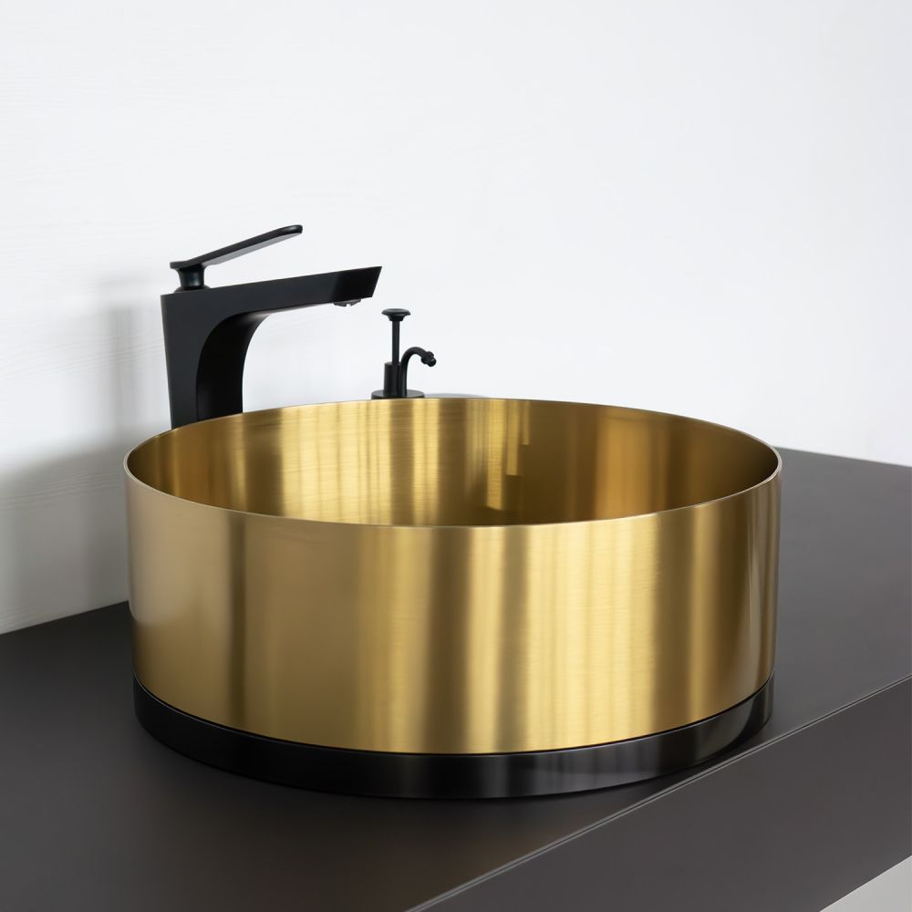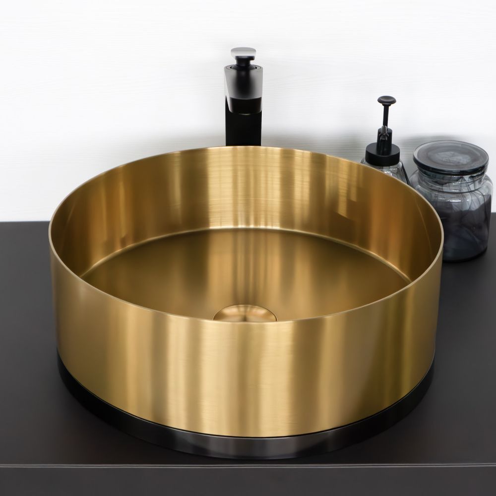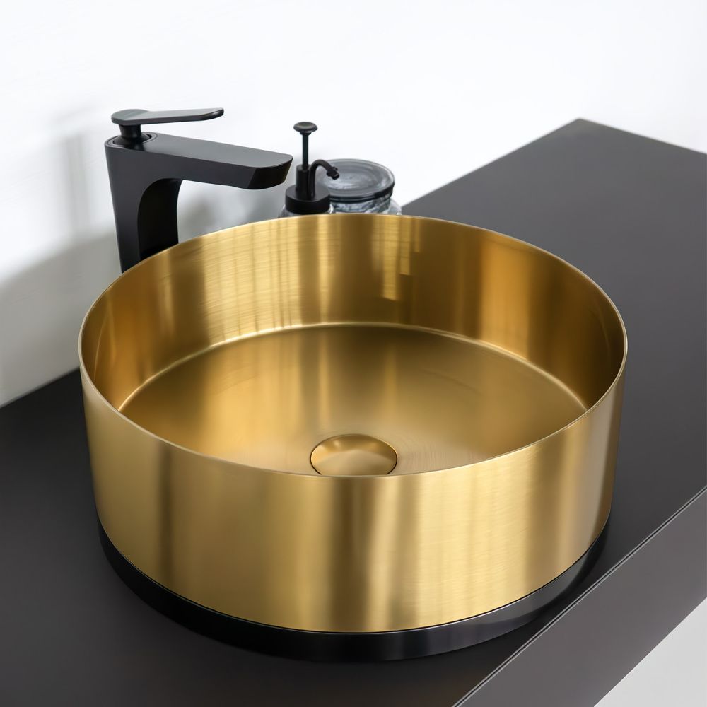 Круглая раковина 40 см из нержавеющей стали Comforty CF8WBTD39K цвет золото с чёрным, с донным клапаном